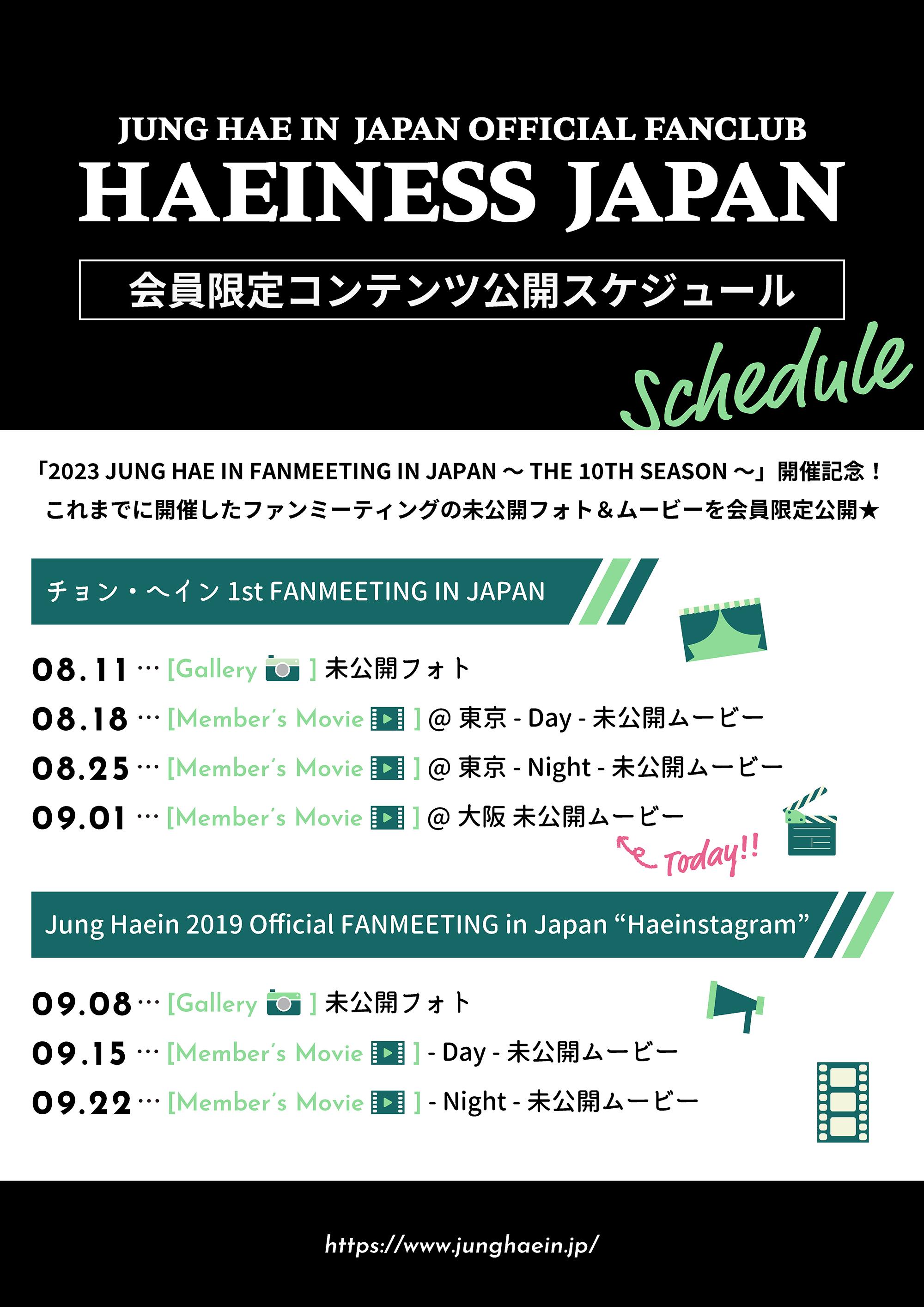 <HAEINESS JAPAN会員限定コンテンツ公開スケジュール>