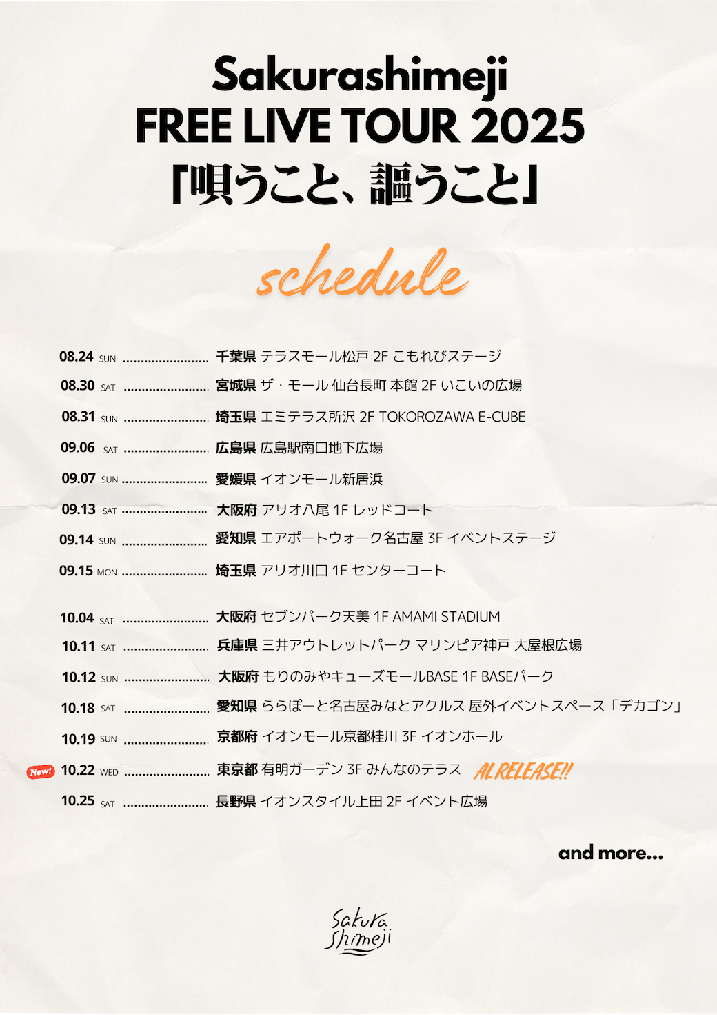 Sakurashimeji FREE LIVE TOUR 2025 開催決定!【後半】会場&日程解禁!