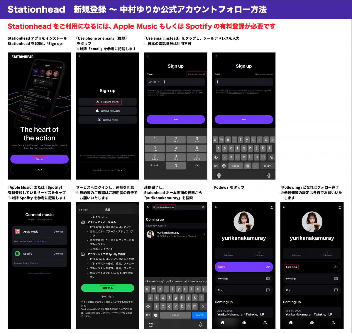 ④ 中村ゆりか公式Stationhead(@yurikanakamuray)を事前にフォローし、Listening Partyが開始されましたらご参加ください。