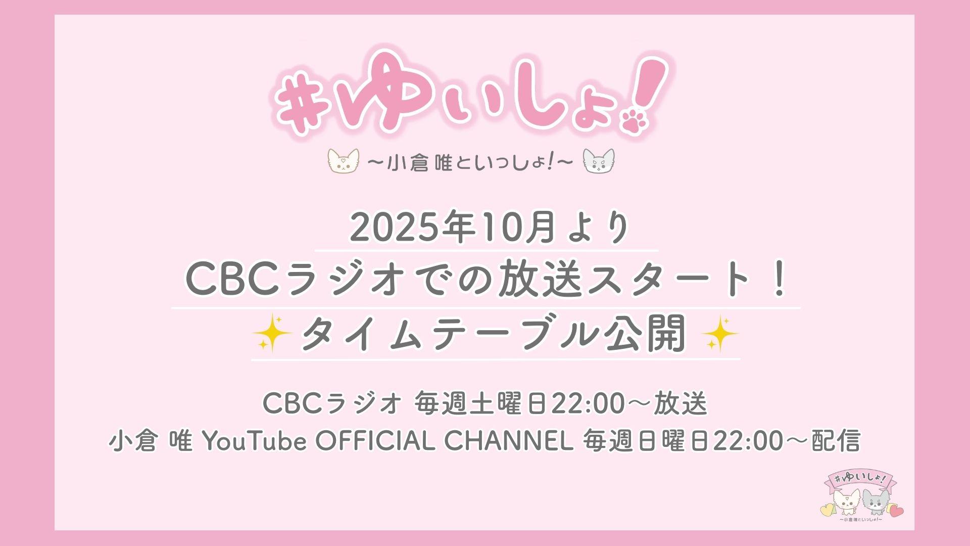 【WEBラジオ】#ゆいしょ!~小倉 唯といっしょ!~CBCラジオでの放送スタートに伴うリニューアルのお知らせ✨