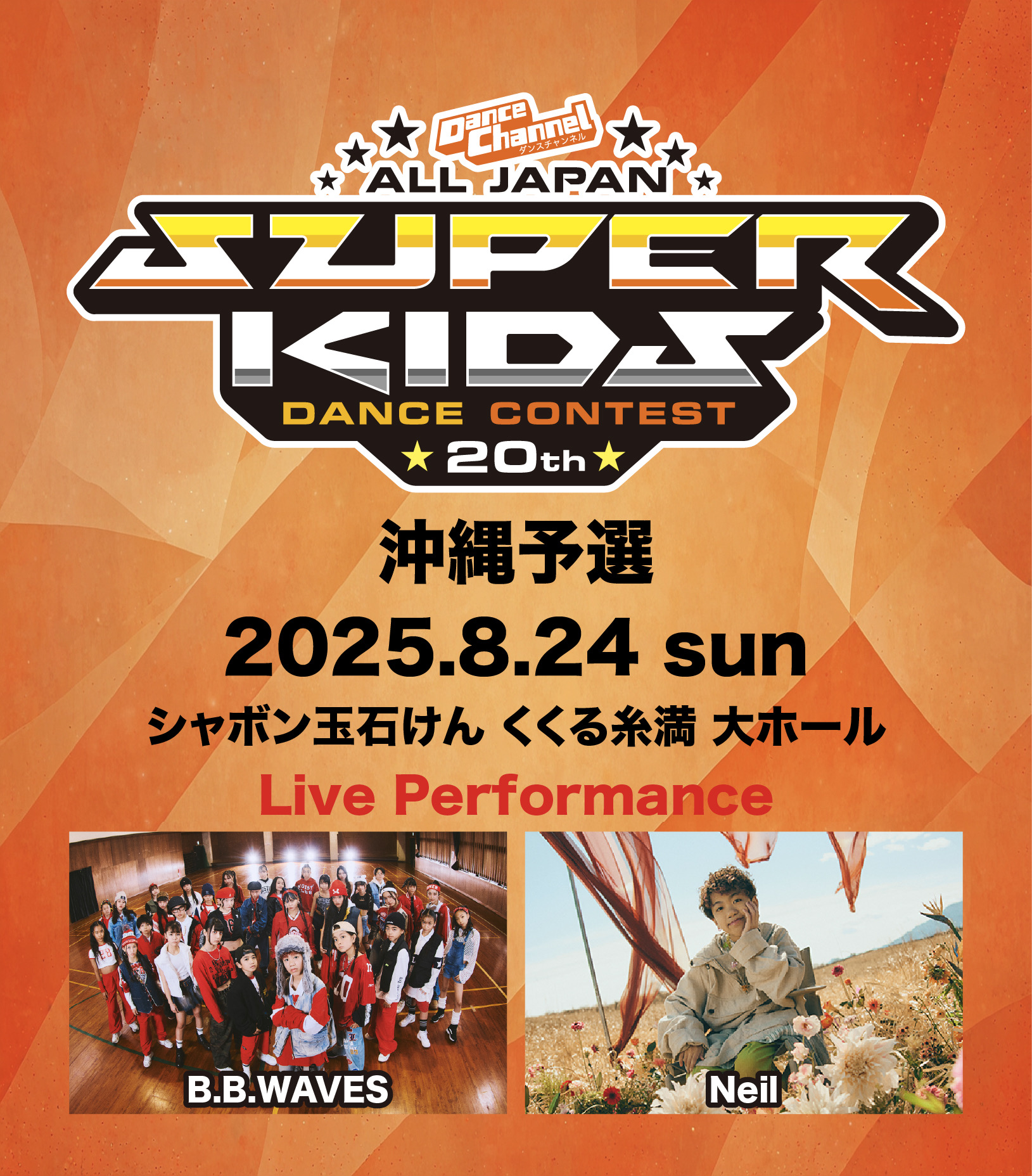 ダンスチャンネルALL JAPAN SUPER KIDS DANCE CONTEST 2025 沖縄予選Live guestとしてNeil、B.B.WAVESが出演します2025年8月24日(日) @シャボン玉石けんくくる糸満大ホール▼LIVENeilB.B.WAVES14時50分出演予定です(時間は前後する事もございますのでご了承下さい)観覧希望の方はこちらのリンクからご確認下さい