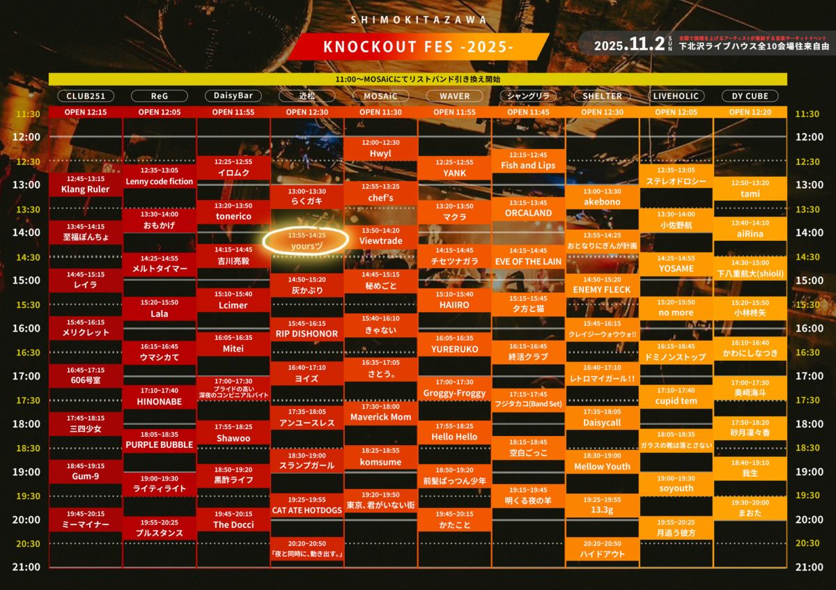 11/2(日)下北沢エリアで開催される「KNOCKOUT FES 2025」へ出演決定しました!