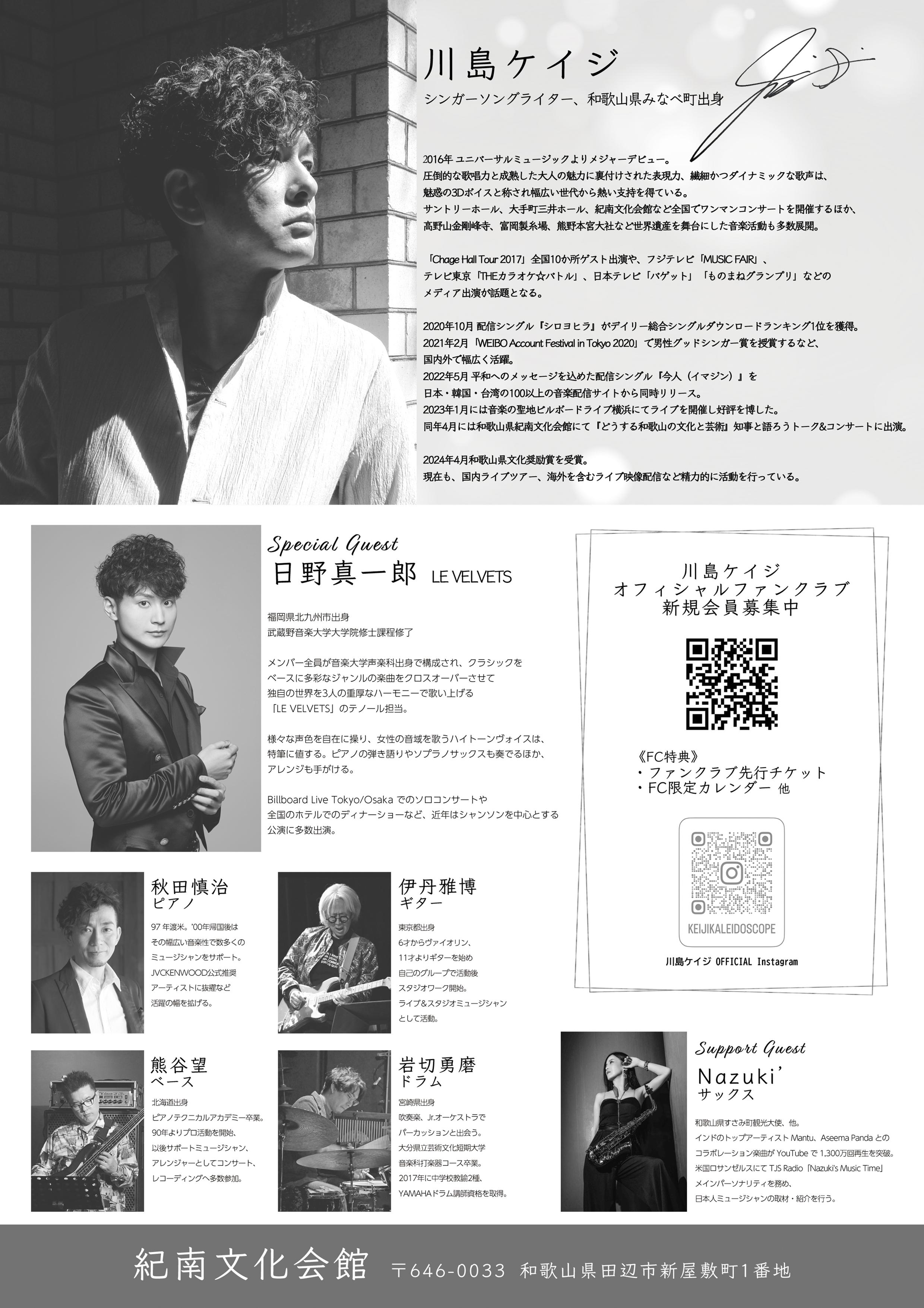 紀南文化会館 大ホール にて開催される「川島ケイジ デビュー10周年記念コンサート」