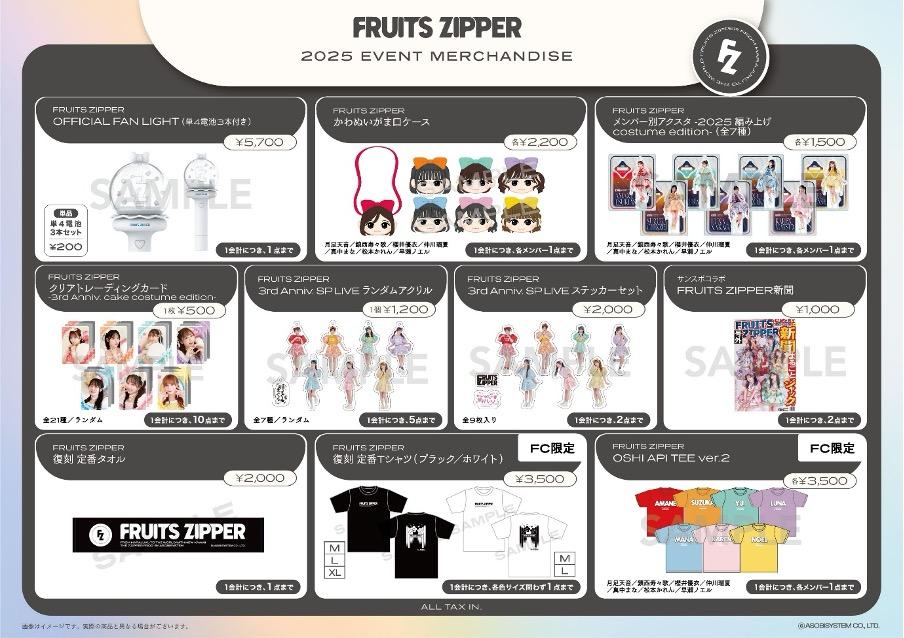 10/25(土)FRUITS ZIPPER 大特典会のグッズ販売情報です!