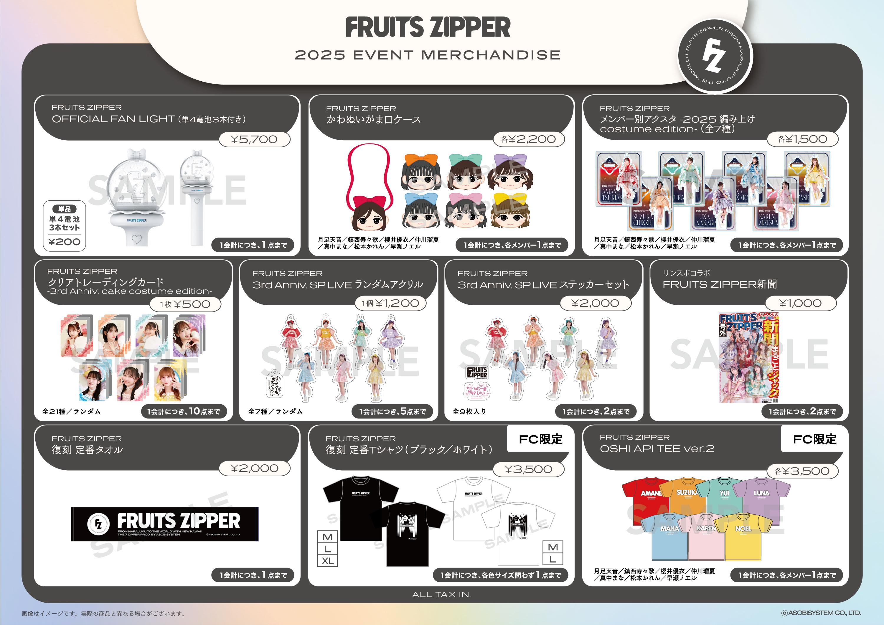 11/1(土)FRUITS ZIPPER 大特典会のグッズ販売情報です!