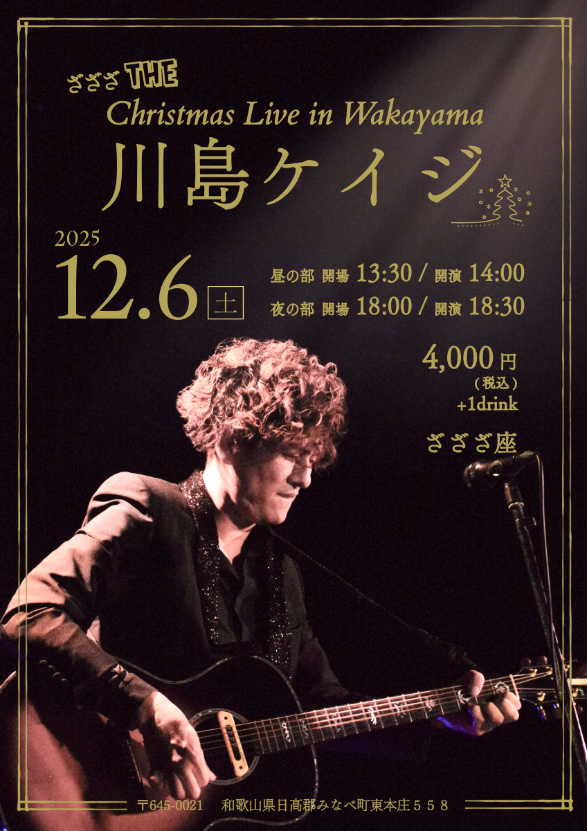 12/6(土) 川島ケイジ ざざざ THE Christmas Live in Wakayama 詳細発表!