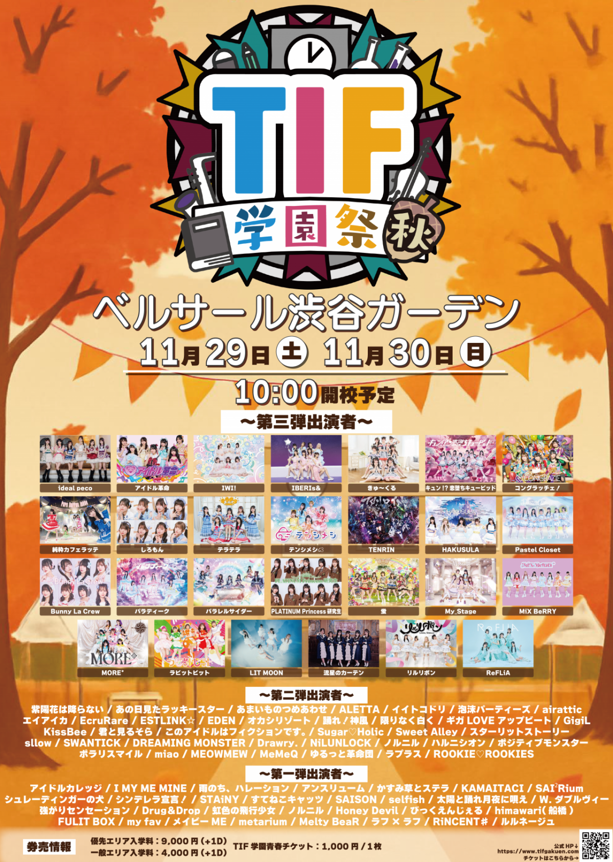 11/30(日)に開催される「TIF学園 「学園祭」秋@ベルサール渋谷ガーデン」に出演が決定しました!