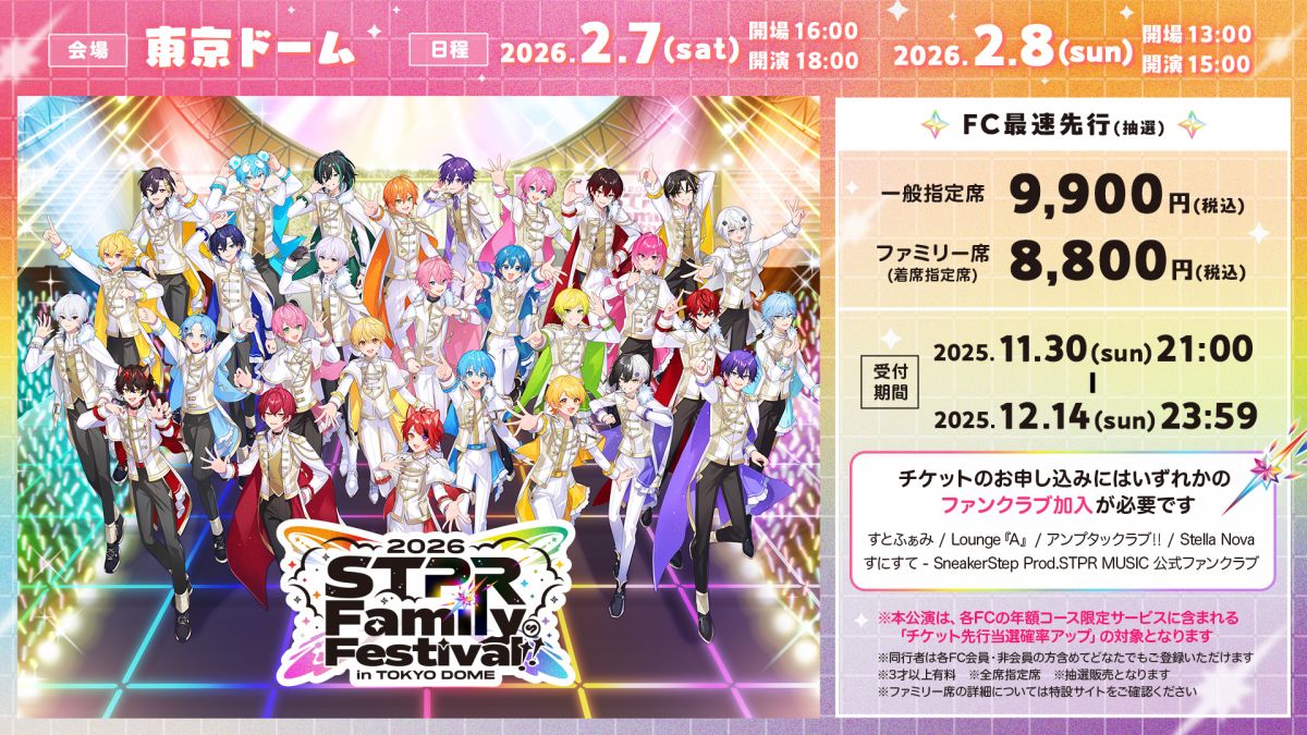 STPR最大規模のお祭り『STPR Family Festival!! 2026』が2026年2月7日(土)・8日(日)、東京ドームにて2DAYS開催決定!!