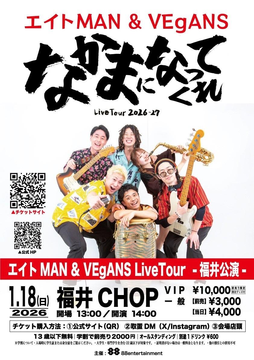 エイトMAN &VEgANS Tour2026 「なかまになってくれ」 始まるよ!?