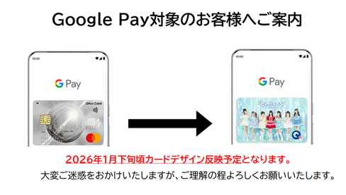 ・1月末時点で自動反映が確認できない場合には、Google Pay上で該当カードを一度削除のうえ、再度ご登録をお願いいたします。