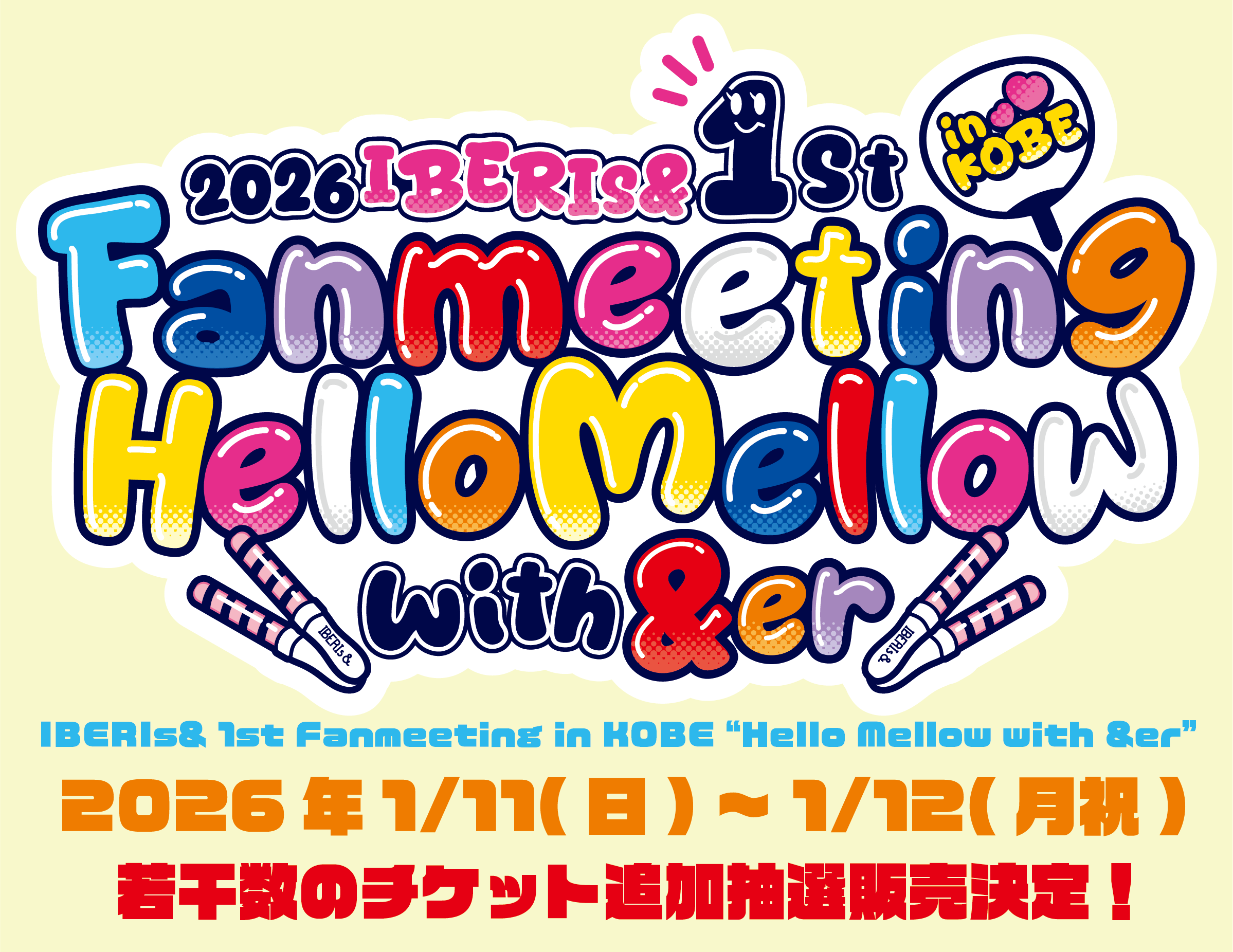 2026年1月11日(日)〜12日(月祝)に行われる”2026 IBERIs& 1st Fanmeeting in KOBE“HelloMellow with &er” ですが、若干数の追加抽選販売が決定致しました。