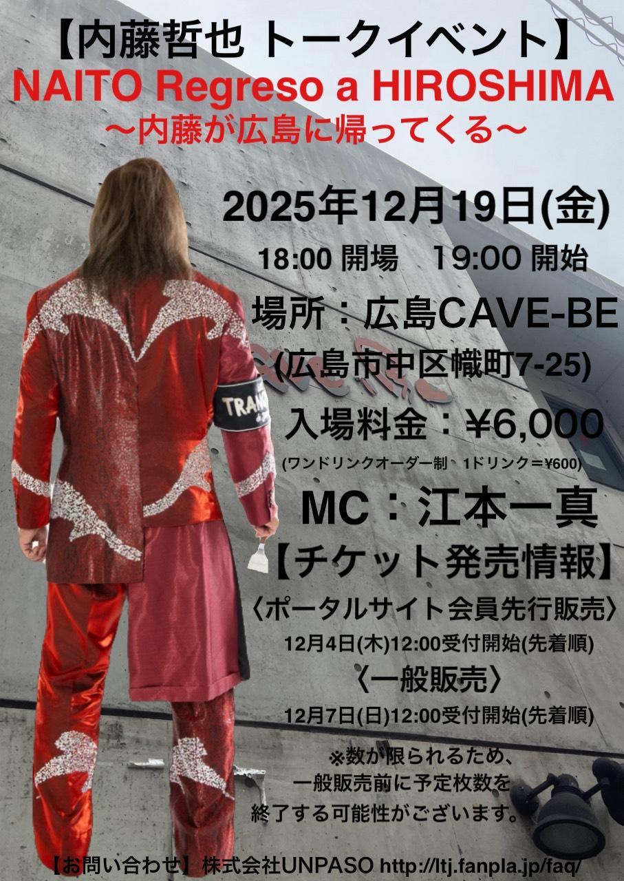 2025年12月19日(金)19:00より開催される【NAITO Regreso a HIROSHIMA】(※チケットは完売済みです)の会場内にて、グッズ販売を行います。