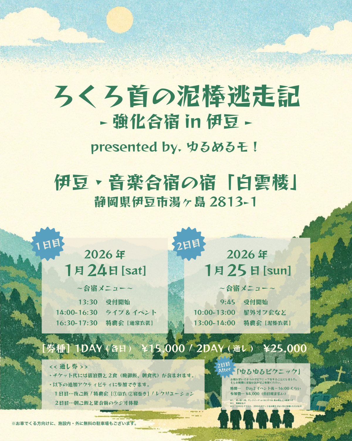 泥棒ゆるめるモ!一座は、改めて士気を高めるべく合宿を決定。
