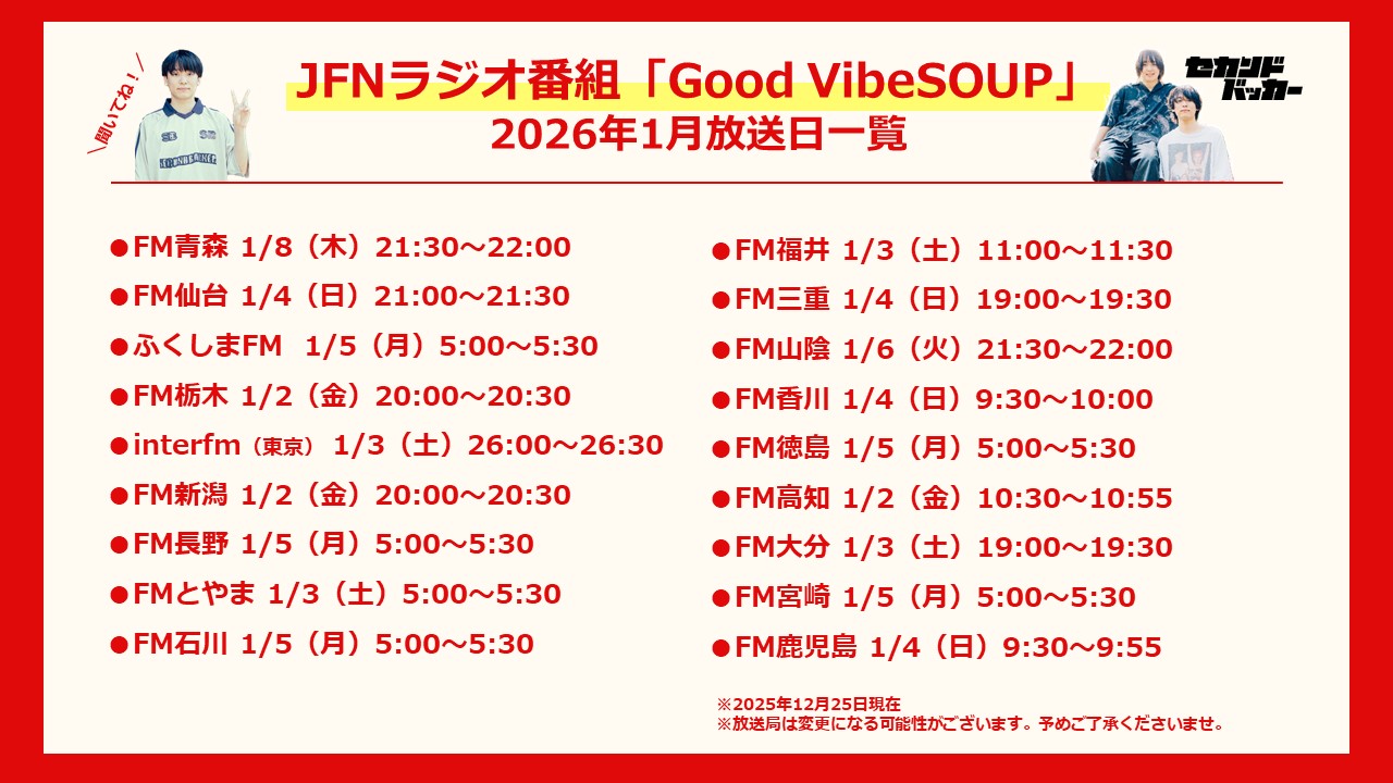 全国20局ネット『Good VibeSOUP』レギュラー決定!