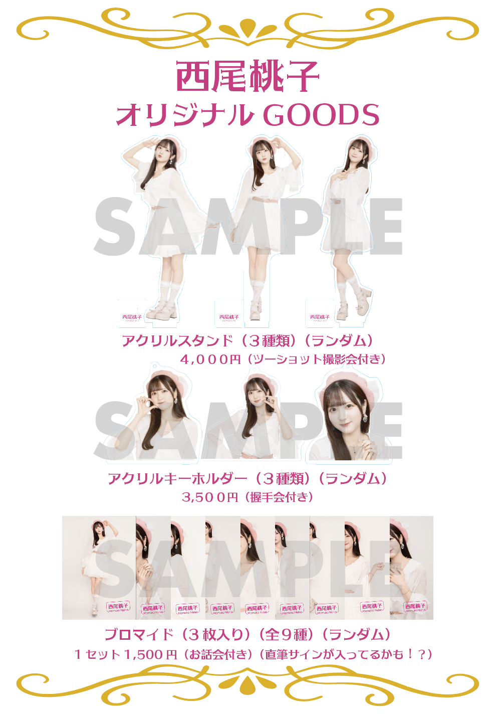 西尾桃子ソログッズをご購入の方を対象に特典会を実施いたします。