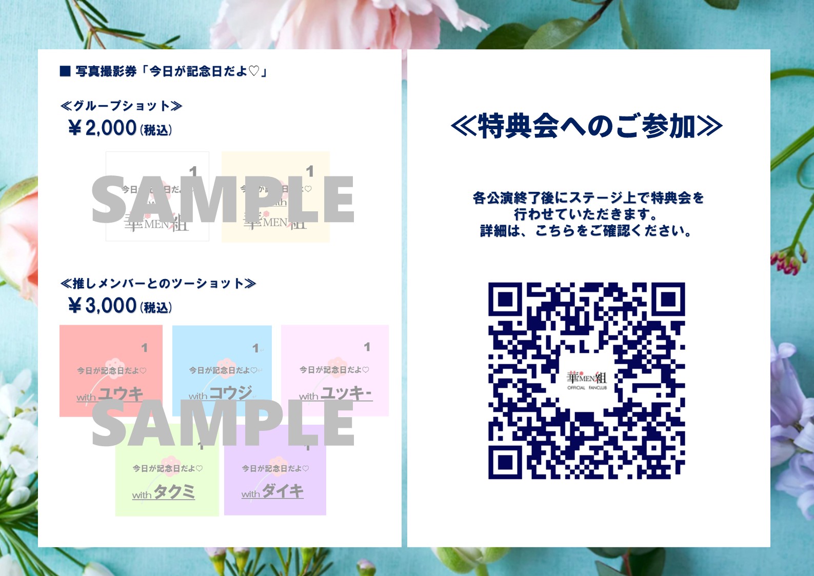 ①《グループショット》写真撮影券「今日が記念日だよ♡」[1枚2,000円(税込)]⇒特典券1枚につき写真1枚撮影