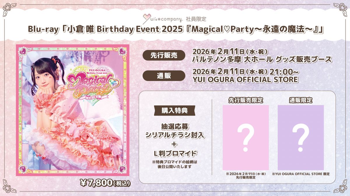 【Yui’s*company.】FC限定Blu-ray「小倉 唯 Birthday Event 2025 『Magical♡Party〜永遠の魔法〜』」発売&先行販売が決定!