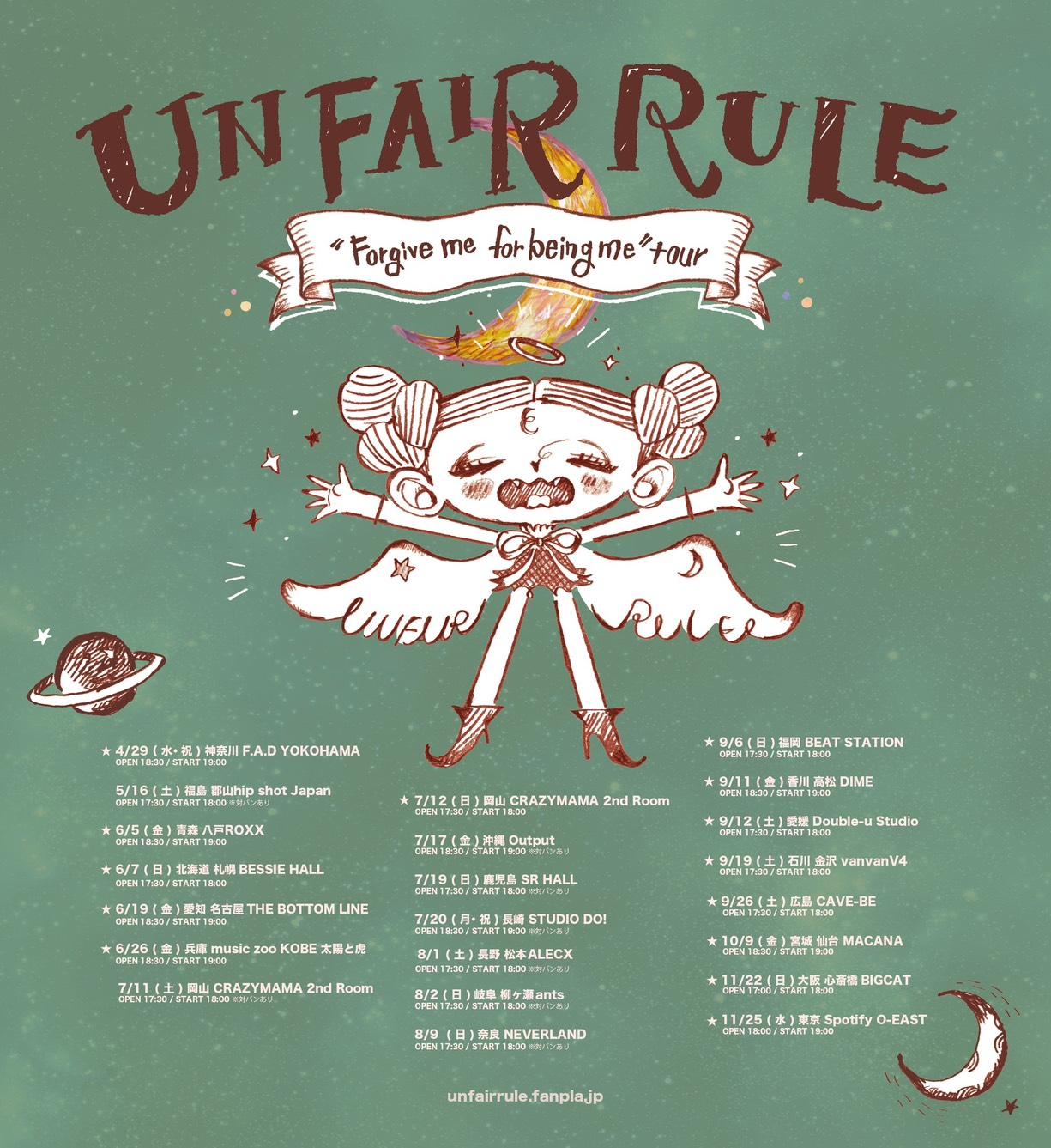 対バン、ワンマンを含む全22公演「UNFAIR RULE “Forgive me for being me" tour 」の開催が決定しました!