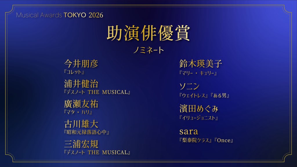 また、「LAZARUS」は演出賞で白井晃氏がノミネートされ、2025年に出演した3作品全てでノミネートされました。