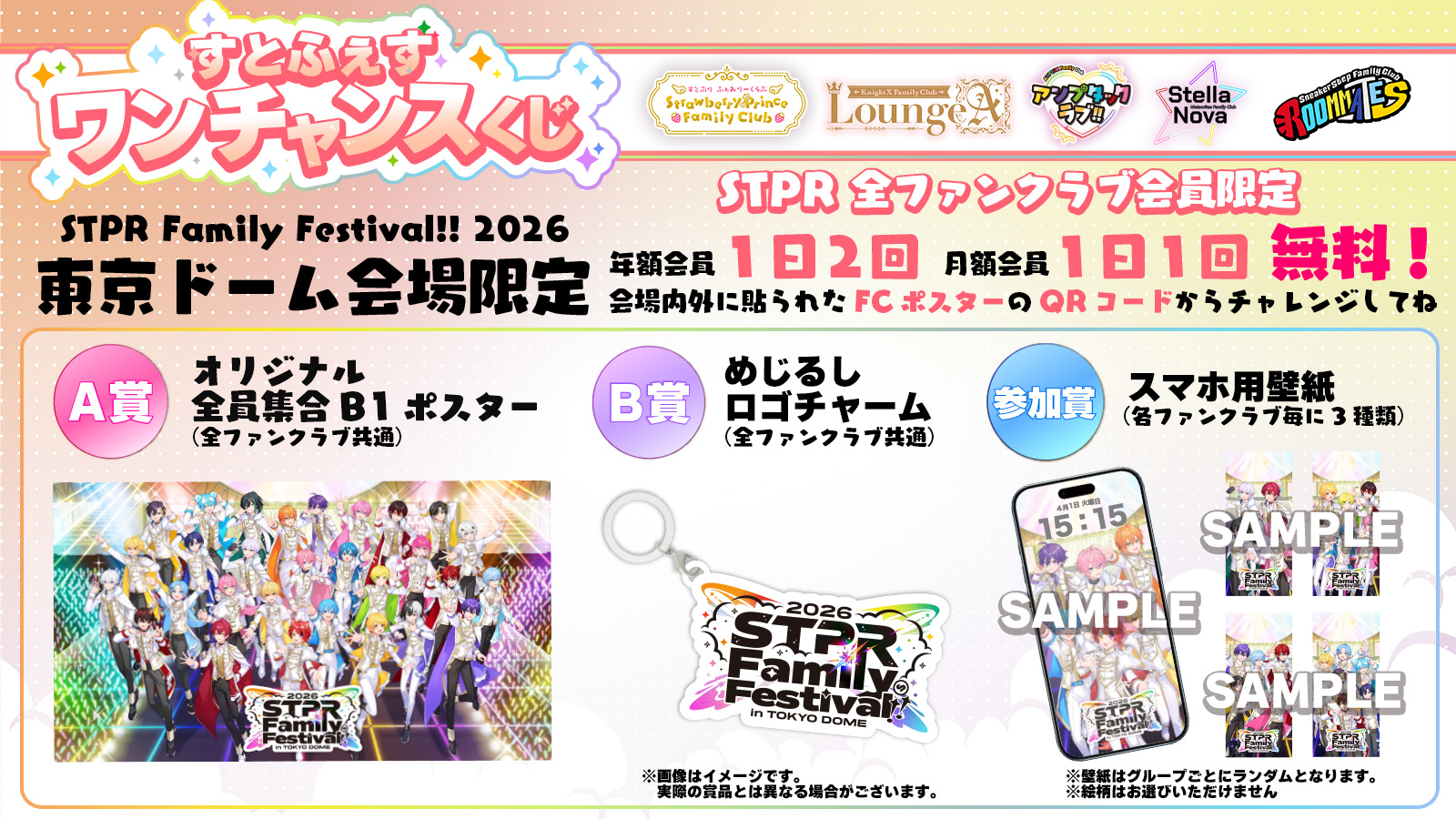 すとふぇす2026の開催を記念して、会場限定で全FC共通企画『すとふぇす ワンチャンスくじ』の開催が決定したよ🙌