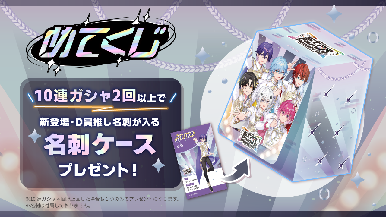 ※くじ開催期間中、10連ガシャを2回以上引いた方(1回くじを20回以上引いた方も対象)に、特典として『限定名刺ケース』をプレゼントいたします