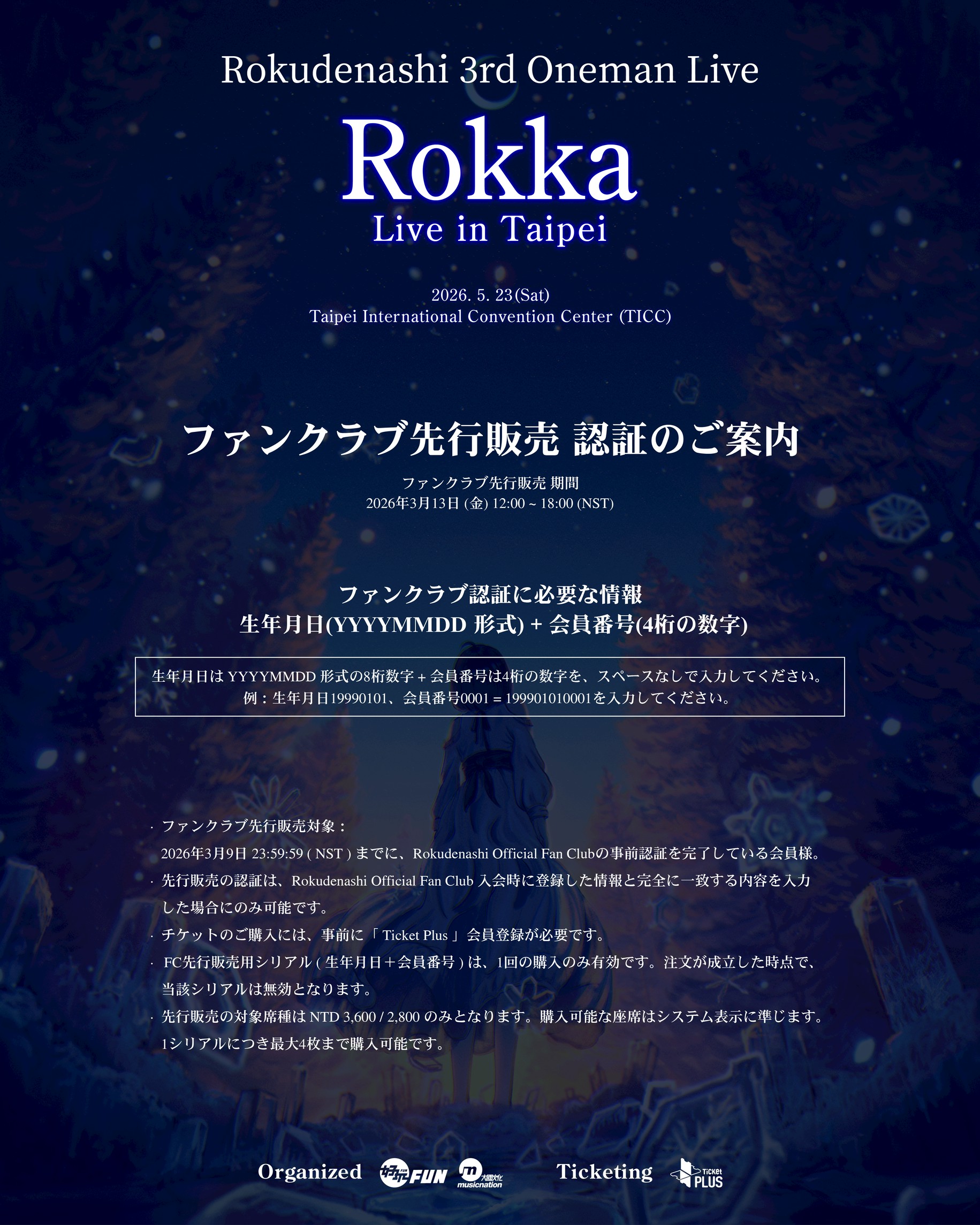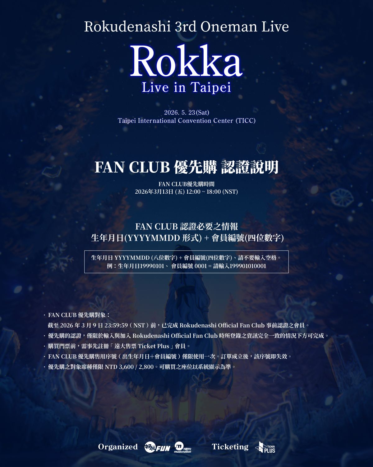 FC優先購:2026年3月13日 (五) 11:00 〜 18:00 ※NST