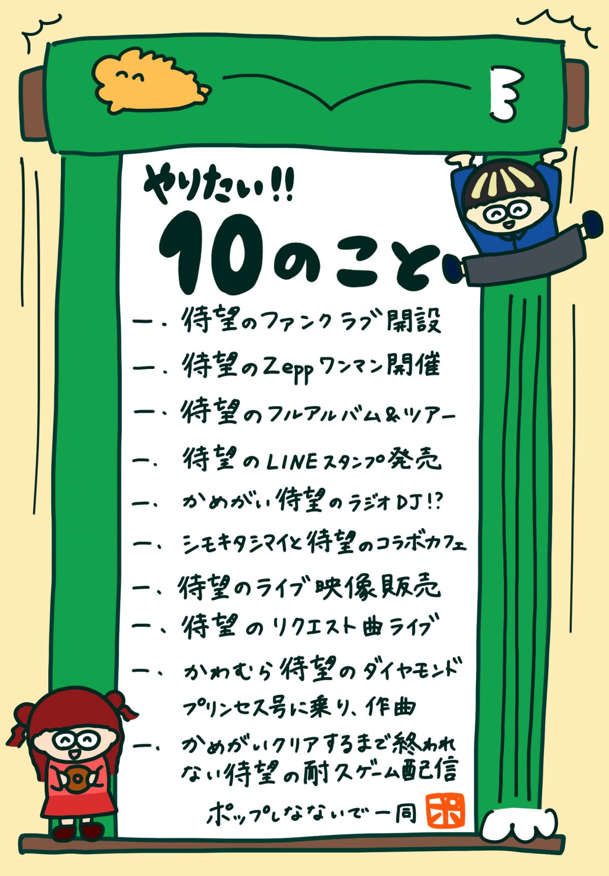 2/14(土)かめがいの耐久ゲーム配信をもちまして、ポップしなないで結成10周年!「10のやりたいこと」をすべて達成いたしました〜!!!!