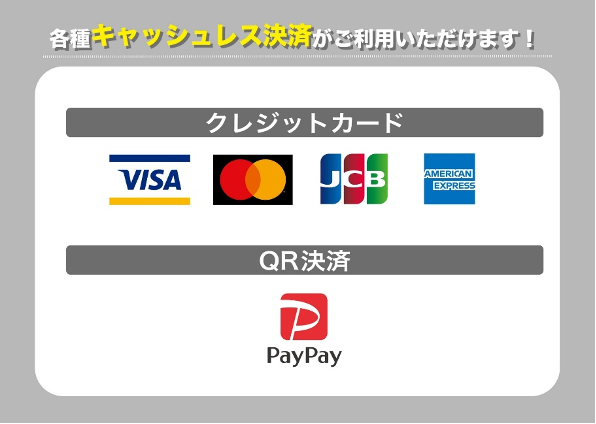 ・お支払い手段は現金のほか、各種キャッシュレス決済がご利用いただけます。