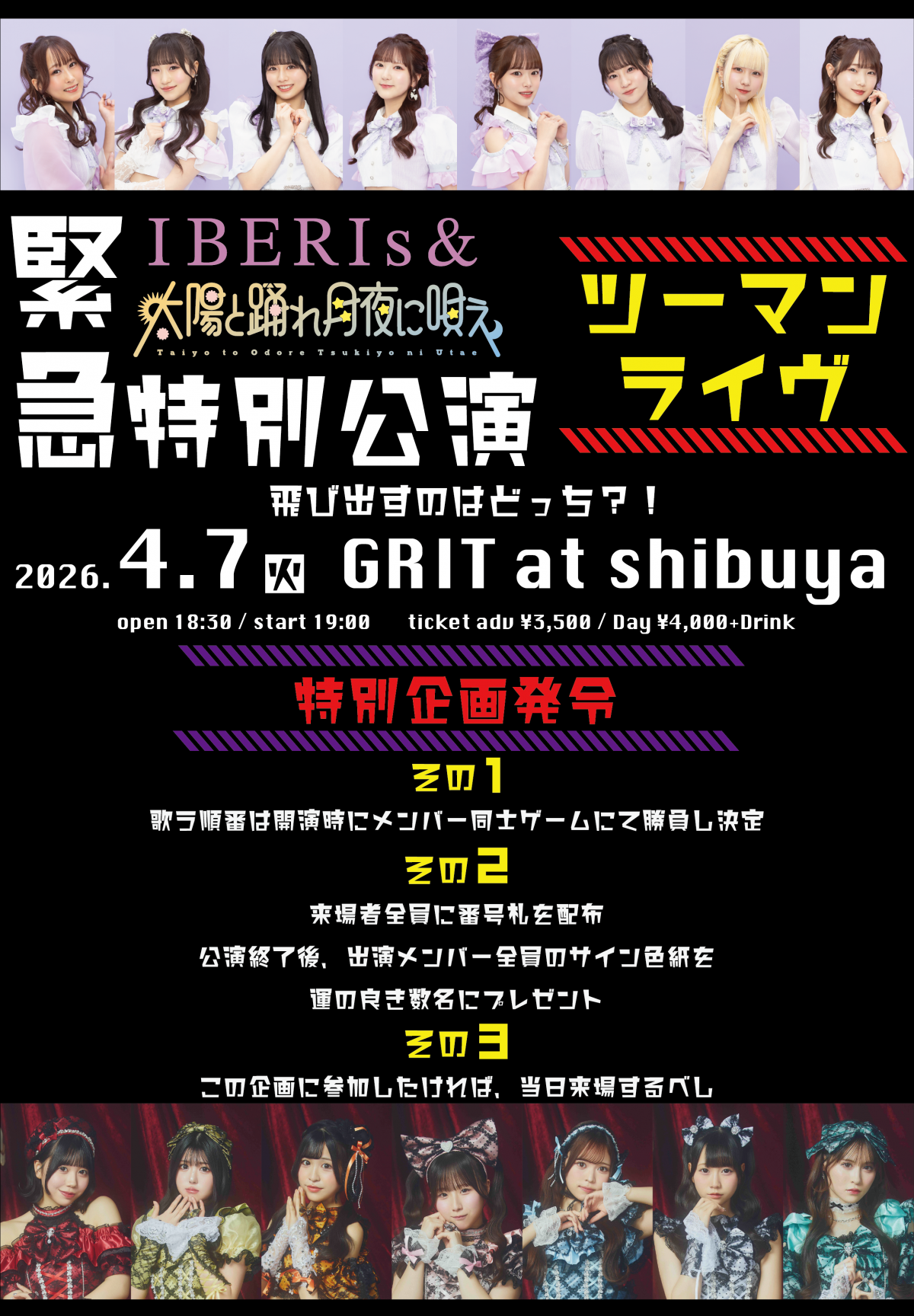 4/7(火)【緊急特別公演】太陽と踊れ月夜に唄え × IBERIs&ツーマンライヴ〜 飛び出すのはどっち?!特別企画発令!