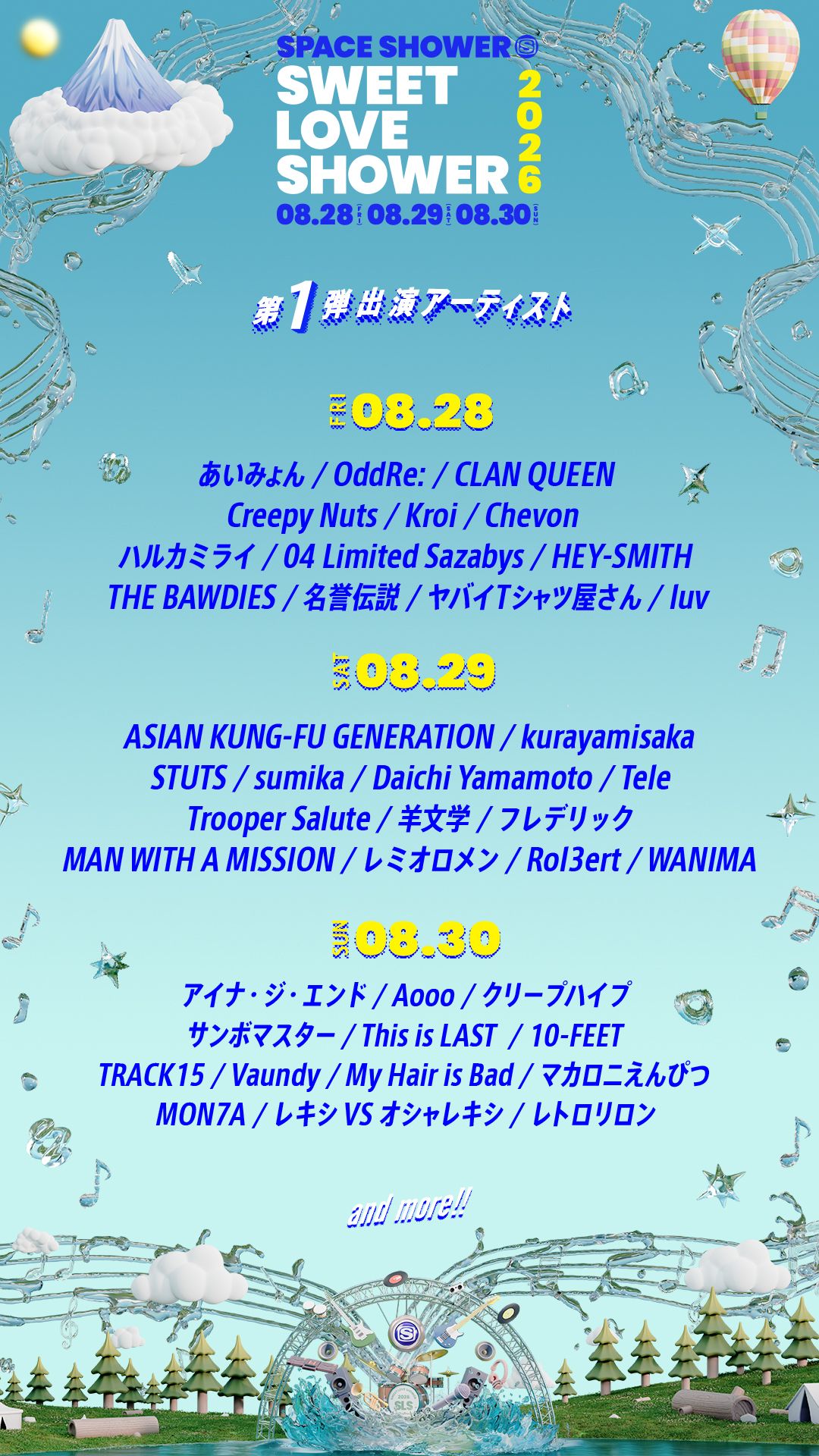8.28(Fri)〜8.30(Sun)の3日間、“山梨県 山中湖交流プラザ きらら”にて開催されるSPACE SHOWERが主催する夏の野外フェスティバル『SWEET LOVE SHOWER 2026』への出演が決定!